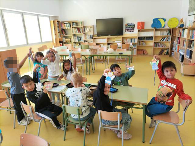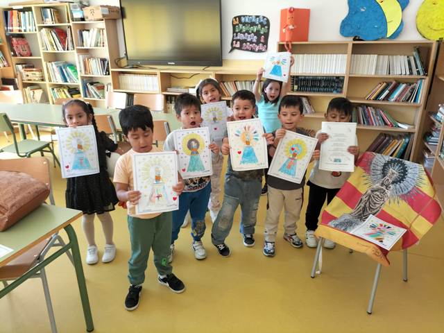 Reforzamos los contenidos con origami, colorean la pieza de papel, juegan con ella y después la llevan a su casa para seguir jugando. Introducción a las actividades: Preparamos actividades para diversos momentos del trimestre. Casi al comenzar el curso hemos coloreado las imágenes de San Miguel, el patrón del barrio y de la Virgen del Pilar. ¡Ahora os mostramos algunas de las fotos! TALLER DEL DIA DE SAN MIGUEL