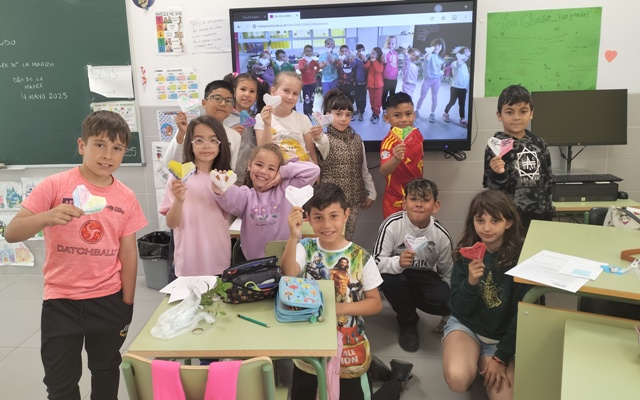 Guardamos nuestra carta en forma de corazón en la cesta aprendida este curso.